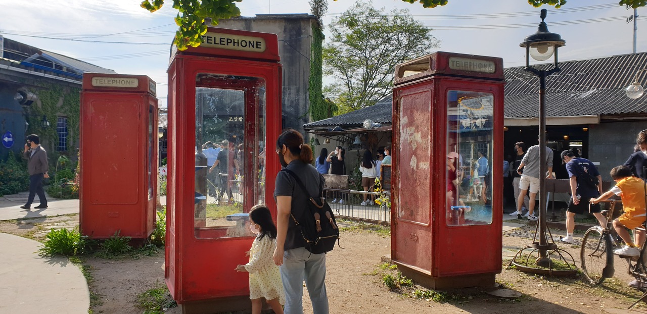 ▲지금도 도료가에 배치해놓은 공중 전화 박스 실제 사용 하지 않지만
