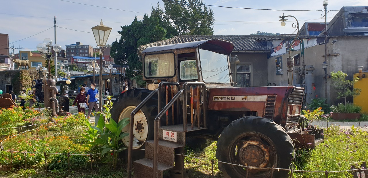 ▲카폐에 방문 한 사람들을 태우고 갈 준비한 트렉터가 준비 대어 있다 ㅎㅎ