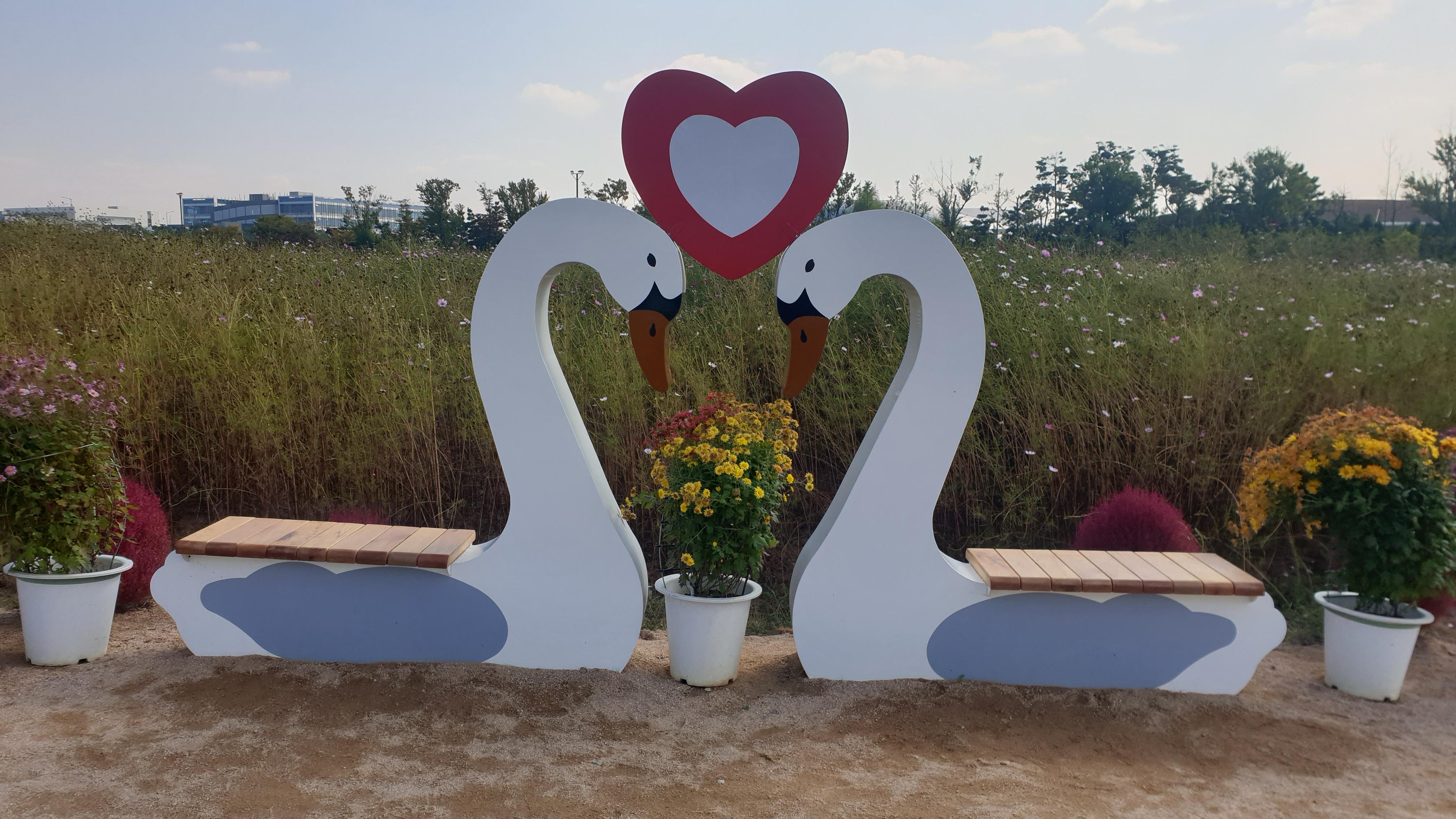 ▲꽃마루 입구 들어서면 아름다운 코스모스와 인의로 만들어 놓은 꽃들이 인상적이다.~~~