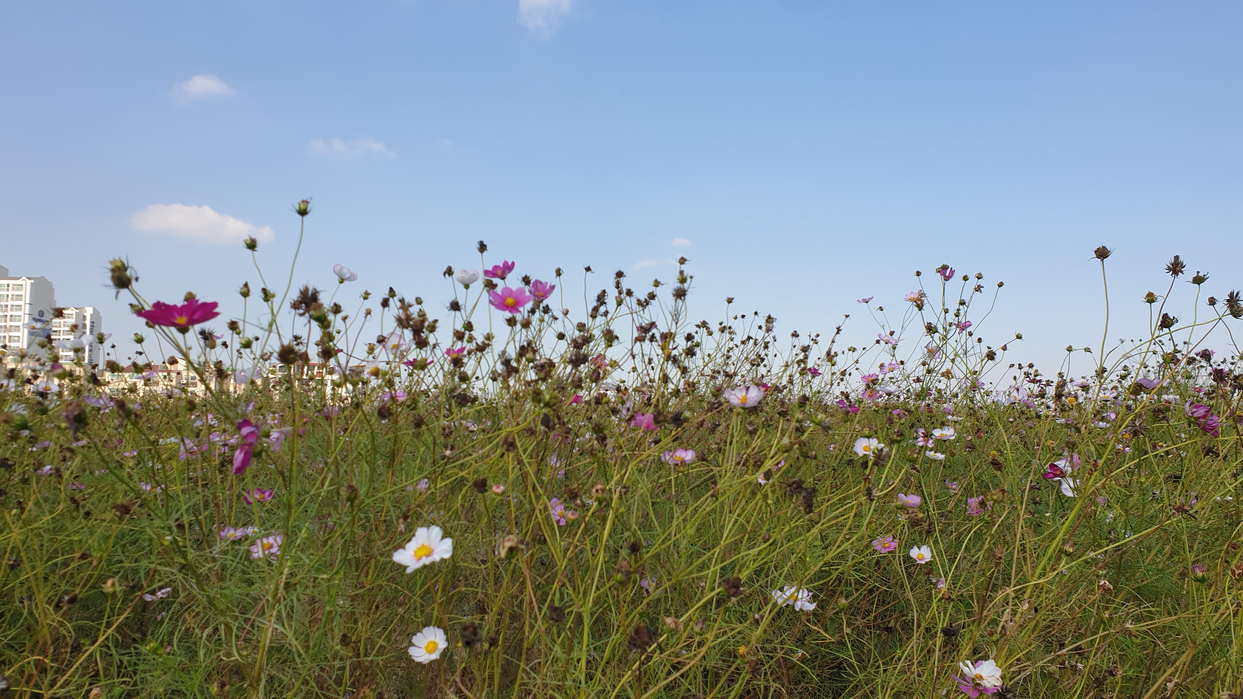 ▲계양 꽃마루 입구에 들어서면 꽃을 정리하여 들어서면 코스모스 바람에 흔들리면서